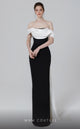 Unveil the elegance of the MNM Couture 2730A, a striking gown crafted from Crepe & Metallic Organza. With a Jewel neck cut and Mermaid lower cut, this dress features long sleeves and is embellished with drapes throughout, creating a sophisticated silhouette perfect for any grand occasion.