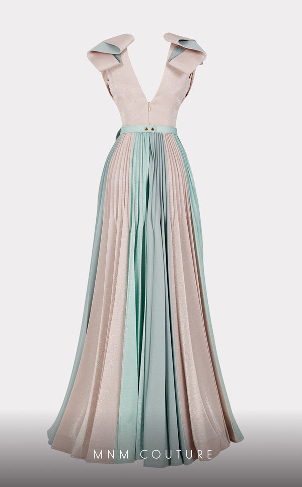 MNM Couture E0028 - A Symphony of Style and Sophistication. Experience the pinnacle of luxury with our striking MNM Couture E0028 gown, designed for the distinguished fashionista. Intricately woven with pristine plain jaquard and adorned with a roman classic design, this masterpiece exudes confidence and exclusivity. The majesty of the evening is yours. From the delicate V-neck that graces your presence to the tie-shaped belt cinching the waist, our MNM Couture gown encapsulates timeless elegance. Fashioned to flatter, the dress is draped on the bust for a silhouette that commands attention, while the shoulders are graced with artful drapes, bringing a sense of authority and sophistication to every occasion. Celebrate your most cherished moments as a wedding guest or at a gala evening in a dress that speaks to the heart of haute couture. The MNM Couture E0028 is an ode to precision craftsmanship, peerless in grace, and riveting in its design. Available exclusively at Couture Shop LA, each piece invites you to indulge in the crafted elegance of limited-edition fashion. With every stitch bearing witness to the exceptional allure of MNM Couture, we extend an invitation to explore our collection online, or within the celebrated confines of our LA downtown boutique for a personalized shopping experience. Keying into the finest evening dress trends and catering to the desires of the wedding guests, the MNM Couture E0028 showcases the zenith of couture with an inclusive approach to luxury.