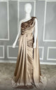 Experience opulence with GLAM by MNM Couture M1109. This column gown features a luxurious jewel neckline, long sleeves, and extensive beaded embroidery. Complete with a detachable silk skirt flowing into a dramatic train�perfect for adding versatility to its pristine couture look.