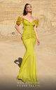 Elevate your evening attire with this glamorous crepe off-the-shoulder long dress. The strapless neckline exudes elegance, while the zipper back closure ensures a secure and seamless fit. The subtle ruching on the skirt adds texture and visual interest to the column-style silhouette. Whether you're attending a formal occasion as the mother of the bride or gracing a gala, this dress is the epitome of sophistication. The fitted silhouette flatters your figure, while the larger train creates a graceful and dramatic effect as you make your entrance. Complete your ensemble with exquisite jewelry to add an extra touch of luxury and refinement.