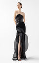 The MNM Couture Style G2020 exemplifies contemporary elegance with its sophisticated blush pink construction and innovative mixed media design. This exclusive evening gown features a structured crepe base in a sleek straight silhouette, elevated by dramatic razmir off-shoulder panels that create architectural sophistication. The sculptural draping flows gracefully from the hips, enhanced by metallic pleated detailing on the bodice that captures and reflects light with every movement. A daring high slit adds sensual allure while maintaining refined elegance. This couture masterpiece showcases exceptional craftsmanship through its fluid architecture and textural contrasts, making it the perfect choice for discerning clients seeking unparalleled luxury and exclusivity for prestigious galas and red-carpet events.