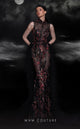 MNM Couture K4103 combines modern features like cold shoulders and a high slit with a classic sheath silhouette. The illusion yoke and see-through beaded bodice add allure, while the sweep train makes this gown perfect for red-carpet looks.