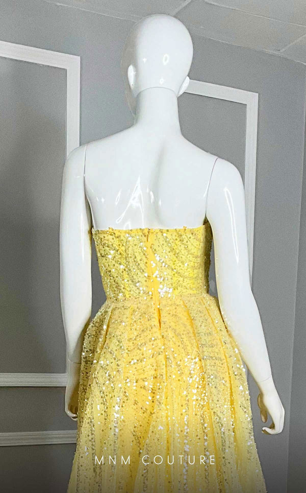 MNM Couture M1106 : Yellow Embroidered Couture Tulle Dress