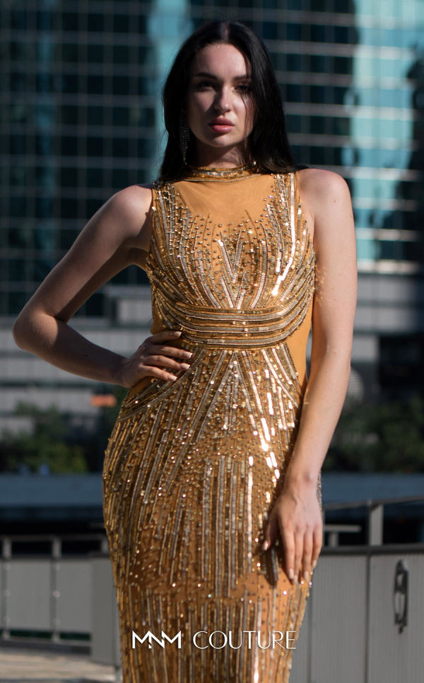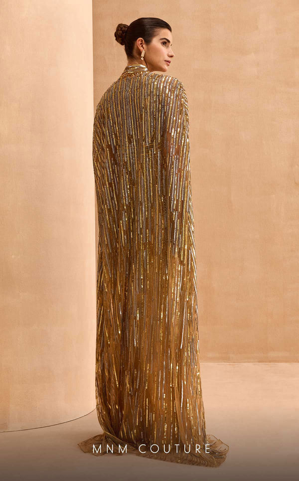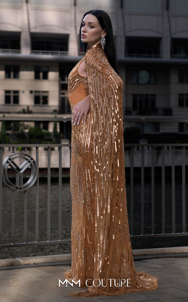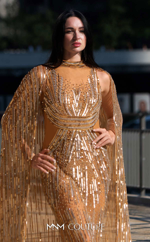 MNM Couture M1145 —a masterpiece of haute couture. Step into the realm of unbridled sophistication with the MNM Couture M1145 dress—a garment that defines a moment as timeless. Designed for the woman of exquisite taste, this dress promises an entrance that will captivate and leave a lasting impression. Its intricate embroidered tulle and sparkling sequin beading exude a luxurious appeal, creating a visual poetry that speaks to the soul of elegance. Experience the pinnacle of design that flatters with intention, hugging curves beautifully in a mermaid silhouette while the illusion scoop neckline and transparent waist section imbue an aura of mystique. The removable beaded cape sleeve and romantic tall collar are manifestations of high fashion, catering to the desire for a unique and customizable statement piece. Infused with top-tier diamond, sequin, and beading elements, every detail of the MNM Couture M1145 reflects the pinnacle of craftsmanship. Available exclusively at Couture Shop LA , it's more than a dress—it's your signature on the world, a symbol of style and confidence. Don't simply attend; arrive with an unforgettable presence. Discover this rare creation and all its details at Couture Shop LA, located in the heart of downtown Los Angeles, or shop online with the convenience of worldwide shipping. For an attire that mirrors the splendor within, choose MNM Couture M1145—where luxury is sewn with every