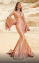 Step into sophistication with the MNM Couture 2756, crafted from Jersey lameh. Featuring a V-neck and Mermaid silhouette with puffed sleeves, this gown is adorned with embroidery on the waist and superpositioned corsets, perfect for those who desire refined elegance.