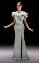 Radiate opulence with the MNM Couture K4246. This beige gown is a masterpiece, featuring oversized off-shoulder cap sleeves and delicate mesh embroidery with sequins and beads. The fit-and-flare silhouette accentuates the figure, while two flowing back capes attached to the train add a majestic touch. Perfect for making a grand entrance at any gala.