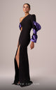 The MNM Couture E0083 radiates elegance with unique silk detailing. This pink fit-and-flare gown features a single short sleeve paired with an asymmetric neckline, heightened by sweeping silk fabric accents at the hem. Its crepe bodice defines the figure, creating a refined silhouette ideal for exclusive celebrations.