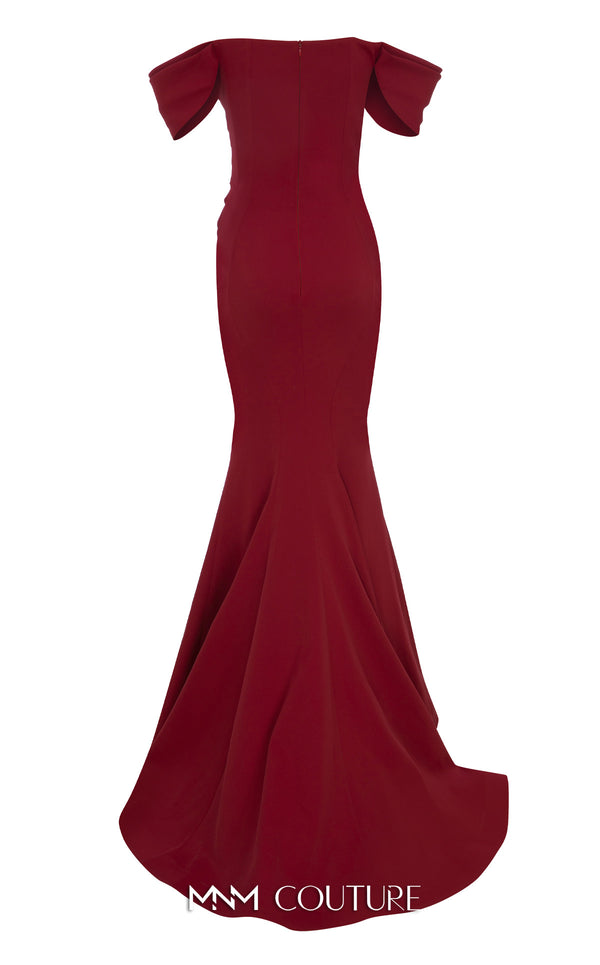 Elevate your elegance with MNM Couture Style N0651. This striking blue gown, made of rayon crepe, features cap off-shoulder sleeves and a straight-across neckline for a regal appearance. With its natural waistline and a fitted mermaid tail silhouette, this dress is a mesmerizing option for evening affairs and red-carpet moments. Its hidden back zipper ensures seamless sophistication.
