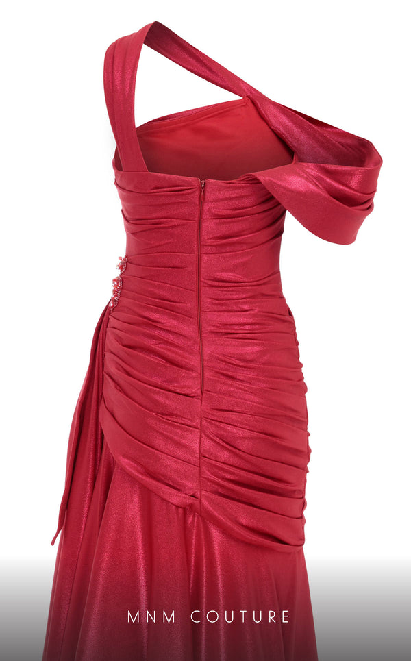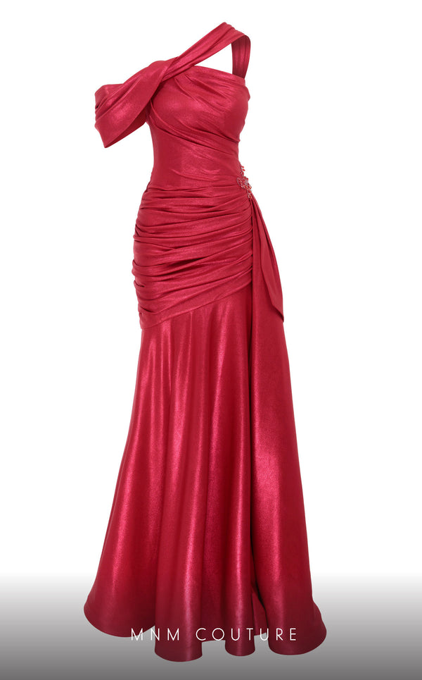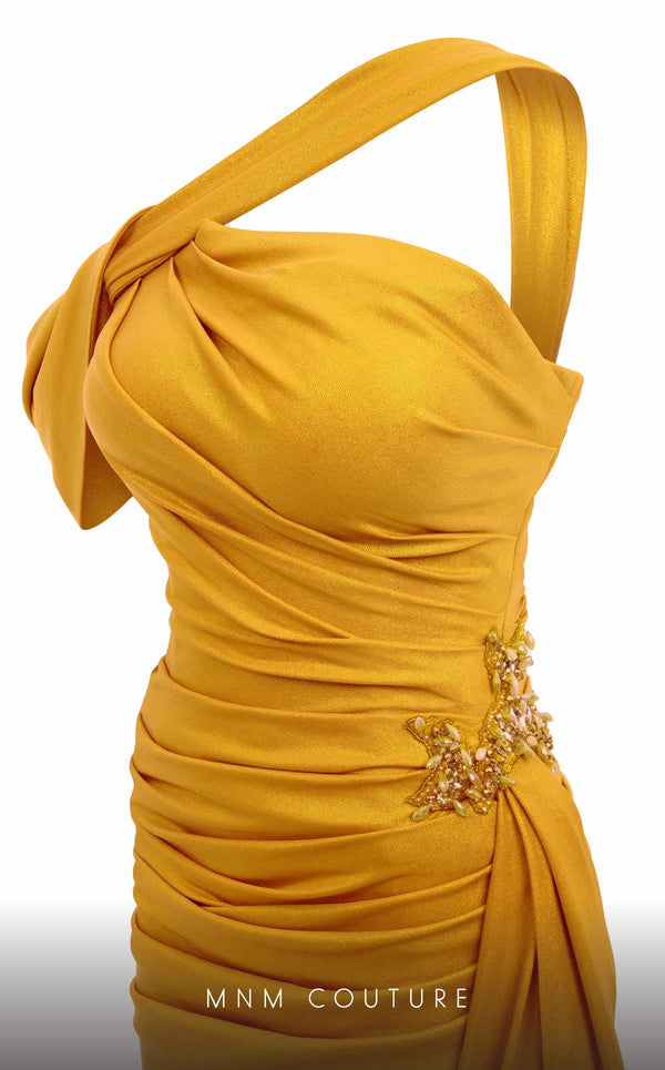 Step into a world where luxury and sophistication coalesce with the MNM Couture 2792, a masterpiece designed for the discerning woman who commands attention and adorns herself in confidence. With its metallic laminated crepe fabric that glistens under the evening lights, this gown is the embodiment of elegance – exclusivity made tangible.With a deliberate asymmetrical upper neck cut and a single off-shouldered sleeve, the MNM Couture 2792 contours the body with its mermaid cut, celebrating the silhouette. The fully draped design cascades into a graceful tail, punctuated by an adornment of sparkling embellishments on the waist, culminating in a statement piece that thrives in both grandeur and grace. Bask in the undeniable presence this gown commands, and embody the essence of couture at every turn.Find yourself entranced by the fit-the-body design, a testament to haute couture craftsmanship, and allow the MNM Couture 2792 to transcend mere fashion. Keywords such as 'Metallic Evening Gown', 'Mermaid Cut Luxury Dress', 'Sophisticated Event Wear', resonate with the piece, elevating the haute couture conversation.Due to the gown's exclusive nature and limited quantity, your window to acquire this exemplar of Couture Shop LA's commitment to luxury and inclusivity is momentary. Ensure immediate action—whether you are here in LA or browsing online, the MNM Couture 2792 is available for worldwide shipping, offering an unparalleled purchasing experience. Visit us in-store for a personalized touch, or secure your gown today at Couture Shop LA.