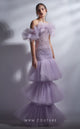 This off-shoulder evening gown is reminiscent of old Hollywood glamour. The body of this fitted sequin fabric dress is wrapped with taffeta draping connected at the bust and skirt and falling seamlessly to the floor. Call/email us now for more info on this show-stopping style and many others.