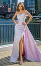 Channel timeless sophistication with the MNM Couture K4149. This beige fitted gown features a halter neckline and an undetachable flared skirt with a graceful train. The design is elevated by all-over sequins and bead embroidery, making it a glowing choice for life's most exquisite moments.