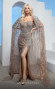 A harmonious blend of modern femininity and sophistication, the MNM Couture N0411 features a lilac and teal palette, bishop off-shoulder sleeves, and an asymmetric neckline. This fitted mermaid gown flows into a sweeping train, while a waistband with a stylish brooch elevates its regal appeal, perfect for unforgettable nights.