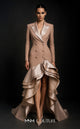 The exclusive MNM Couture Style E0113 is a vision of modern romance, designed to captivate from every angle. This stunning pink gown features a flared silhouette crafted from embroidered mesh and delicate organza. The bodice is exquisitely adorned with shimmering sequins, while an asymmetric sweetheart neckline and off-shoulder cap sleeves add a touch of contemporary elegance. The design flows into a graceful organza skirt that culminates in a long, dramatic train, ensuring a truly unforgettable entrance for our discerning clientele.