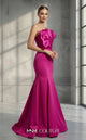 Exude drama and poise with MNM Couture Style N0657. This black gown, crafted from mesh embroidery, features unique cape-long sleeves and a straight-across neckline. The natural waistline and column-fitted silhouette ensure a striking yet refined look, making this dress a perfect choice for avant-garde fashion moments and luxurious events.