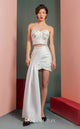 Make a chic and modern statement with the MNM Couture GOF2516, a striking black-and-white ensemble that combines bold silhouettes with rich textures. This exclusive two-piece outfit pairs a uniquely pleated crop top with sophisticated wide-leg pants, creating a perfectly balanced and fashion-forward look. The white taffeta crop top is a standout piece, designed with structured pleats that add dynamic texture and create a modern, chic silhouette. This is elegantly contrasted with the black wide-leg taffeta pants, tailored with a high-waisted design that ensures a flattering fit and a dramatic, flowing line. The luxurious taffeta fabric lends a subtle sheen and sophistication to the entire outfit. Curated for stylish soir�es and contemporary events, this limited-quantity ensemble is a testament to modern elegance.