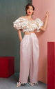 Bask in bold color and contemporary artistry with the MNM Couture GOF2537, a vibrant ensemble that�s impossible to overlook. The orange mikado piqu� skirt boasts an asymmetrical high-low cut, with elegant draping and a fluid silhouette that moves with you. Its perfect companion is an off-shoulder cropped top with show-stopping ruffles and thin shoulder straps, marrying modern structure with delicacy. Together these pieces create a look ideal for jubilant celebrations, fashion-forward galas, and upscale outdoor events where individuality and sophistication meet. Limited-quantity, designed for distinctive impact.