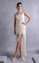 MNM Couture GOS2510 pairs a high-waisted off-white midi skirt crafted from premium piqu� fabric with a sparkling crystal-dotted jersey body. The skirt�s flared silhouette and luxurious texture make it ideal for elegant evenings, while the body�s sculptural petal-like organza shoulders add a dramatic flair. This exclusive ensemble is perfect for weddings, galas, or standout evening events.