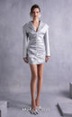 MNM Couture GOS2531 pairs a luxurious high-waist piqu� midi skirt with a voluminous flared silhouette and subtle pleated details with a pleated gold organza corset top. The corset features dramatic ruffled detailing that creates a sculptural silhouette, making this exclusive look perfect for glamorous evening events or modern bridal wear.