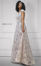 Step into sophistication with the MNM Couture K3496 from Couture Shop LA. This exquisite off-the-shoulder lace dress features a trumpet skirt and is intricately designed with boning to ensure a flawless fit and support. The stunning floor-length train, crafted with birdcage details, maintains volume and structure from the pleats. Adorned with stylized lace in a cage-like pattern, this couture piece showcases floral embroidery and a charming 3D flower effect, enhanced by subtle beading for a touch of luxury.