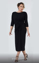 GLAM by MNM Couture DZ8391B balances chic simplicity and comfort with its 3/4 sleeve design and classic round neckline. Crafted with high-quality polyester, this midi dress is fitted at the waist, offering a graceful option for a variety of occasions, from day events to evening glamour.