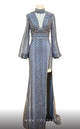 The GLAM by MNM Couture M1103 reimagines elegance with its tailored column silhouette and classic V-neckline. Long embroidered sleeves enhance its charm, while a flowing train adds the perfect touch of grace, ideal for sophisticated soir�es or award ceremonies.