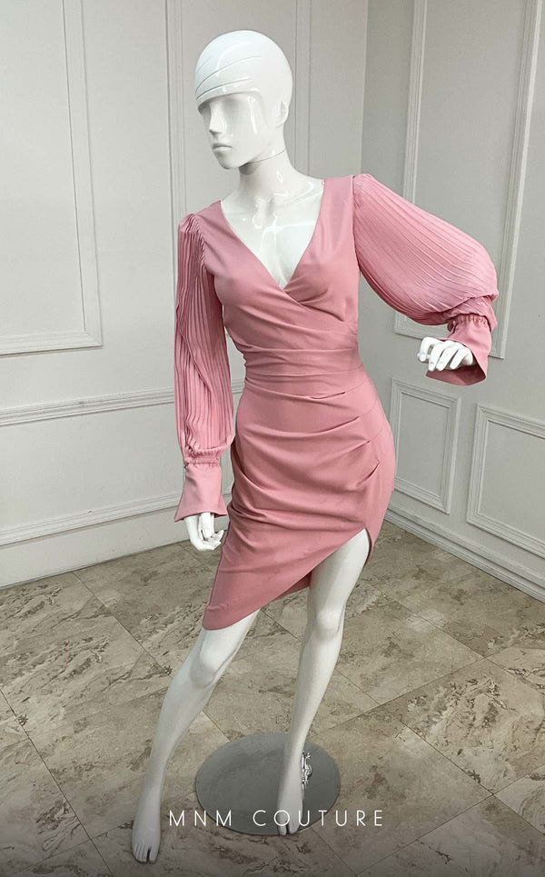 Elegance meets refinement in GLAM by MNM Couture R01104. This stunning midi dress features long pleated sleeves and a flattering V-neckline. Crafted from a premium polyester-spandex blend, its draping design enhances the natural waist, making it ideal for cocktail parties or formal events where sophistication is paramount.