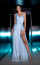 Make a grand entrance in this stunning two-piece evening gown adorned with intricate beadwork. This ensemble is guaranteed to make you the center of attention at any special occasion. The sleek and timeless design features a flirty cape-style sleeve, adding a touch of modern drama, while the turtle neckline keeps it classic and sophisticated. The length of the dress is carefully crafted to flatter any figure, accentuating your curves beautifully. The alluring slit and open back add just the right amount of drama and allure. Whether you're attending a couture event or a black-tie affair, this dress will ensure you have an unforgettable silhouette that will leave a lasting impression.