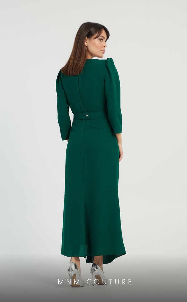 GLAM by MNM Couture DZ1067 showcases effortless charm with a classic V-neckline and long sleeves. Crafted from premium 100% polyester, its natural waist and midi length ensure a figure-flattering fit. The back zipper adds practicality to its timeless allure, perfect for formal occasions.