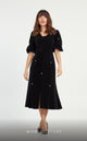 GLAM by MNM Couture DZ2110 exudes timeless elegance with its V-neckline and long sleeves. Crafted from a premium polyester-elastane blend, this dress offers a graceful midi length and a natural waistline for a flattering silhouette, completed with a seamless back zipper for easy wear.