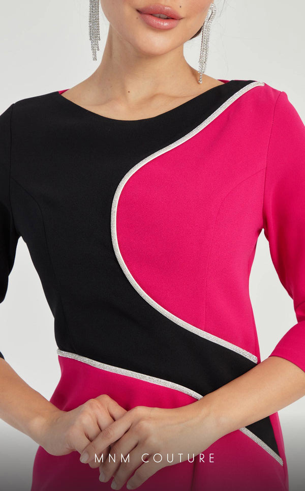 GLAM by MNM Couture DZ8319 encapsulates understated beauty with its 3/4 sleeve design and simple yet versatile round neckline. Designed with premium polyester fabric, it features a cinched natural waist to create an effortlessly graceful silhouette.