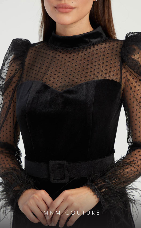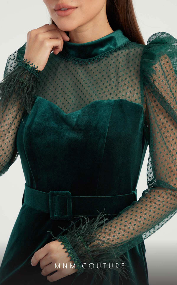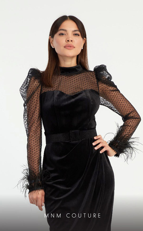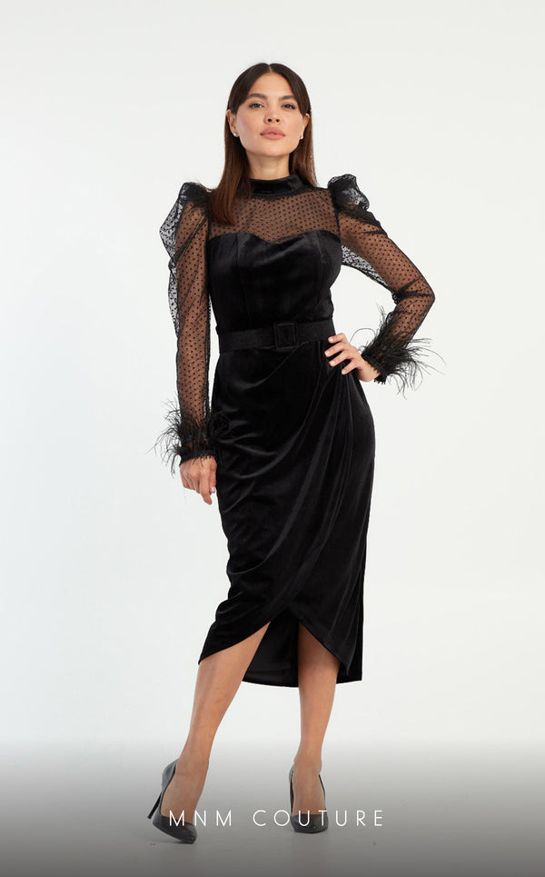 GLAM by MNM Couture DZ8328 delivers timeless sophistication with its classic round neckline and sleek long sleeves. Made from finely crafted polyester, this midi dress flows elegantly while accentuating the natural waistline, perfect for formal or semi-formal occasions.