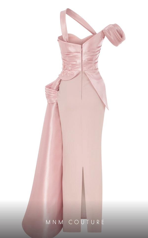 Unveil your sophisticated flair with the MNM Couture F02810, a masterpiece tailored for the discerning fashion aficionado searching for that perfect evening gown, wedding guest dress, or a glamorous red carpet statement. Born from the luxurious union of satin and crepe, the F02810 resonates with exclusivity and style. This asymmetrical marvel boasts an off-shouldered sleeve that drapes gracefully, embodying a Roman classic shirt's timeless allure with a stylish side tail that anchors its majestic silhouette. Pivoting on a corset structure, it assures both comfort and an exquisite fit, sculpting a profile that turns heads and captures hearts. The design's centerpiece is a draped bust embellished with tasteful embroidery and tassels that cascade elegantly at the waist – each detail a testament to the haute couture artistry of Couture Shop LA. Choose this garment and become the quintessence of elegance at your next luxe event. By prioritizing inclusivity and offering a personal touch with each purchase, our expert customer service ensures a seamless shopping experience. Indulge in the exceptional – the MNM Couture F02810 is waiting for you. Drawn in limited quantity, secure yours today via our vibrant online presence or visit us in downtown LA for an unparalleled personalized service.