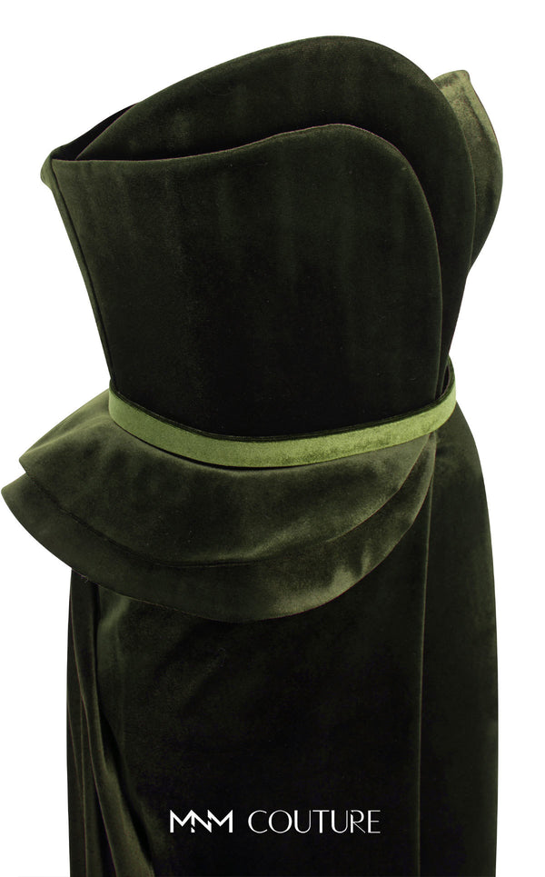 MNM Couture N0515 : Radiant Drama in a Strapless Velvet Evening Gown.